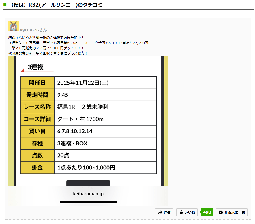 今週会員様から届いた無料情報的中報告口コミをピックアップしてご紹介。