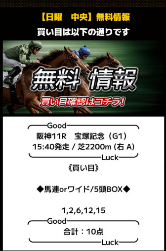 今回、【バツグン】の検証で無料情報に2日参加してみましたが、両日ともに重賞が的中して…