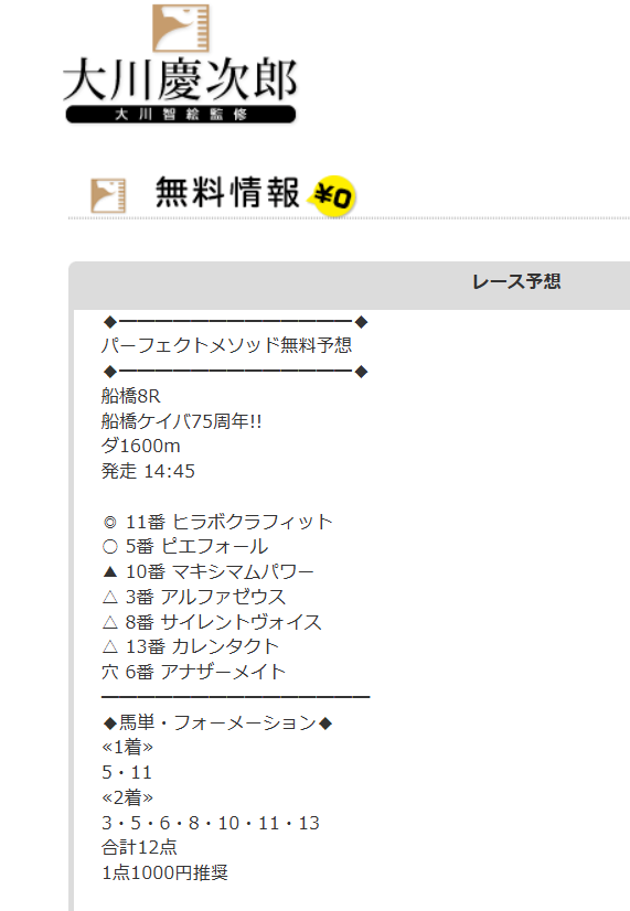 こんなことの地方の予想参加するくらいなら大川慶次郎選ぶわ間違いなく