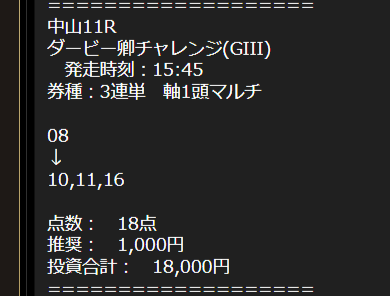 まったく中山の予想がつかえない 皐月賞までに破産するわこのままじゃ(^^;