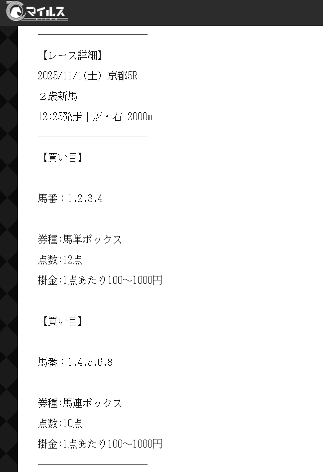 2連続的中! とはいかなかったけど回収率考えると継続不可欠の絶対案件。 一発目のレースの配当だけでお腹いっぱいです、京都新馬戦で1989.4倍の13人気を入れた買い目が的中。 994,700円払い戻し、馬券代9800円引いても回収率10150%、純利益984,900円。 口コミ通りの実績でした、今までさんざん騙されてきたけど極限の領域にたどり着きました。