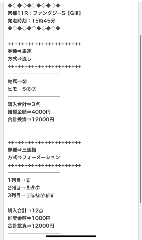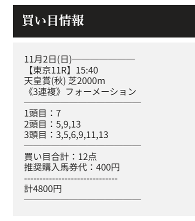天皇賞の無料3連単予想で47,580円的中もらえました、日曜日最終日にめっちゃうれしかった! 万馬券ゲット出来て幸せです!