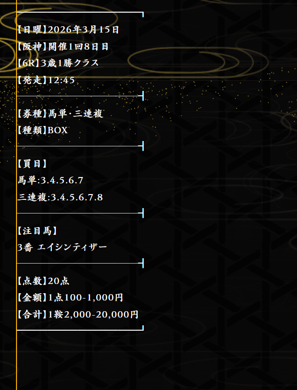 初回からこんな的中を馬券代たった6千円(1点500円)で貰っちゃったら永続利用&リピート確定!