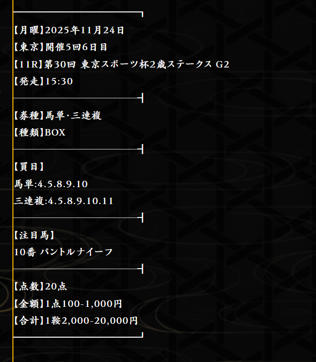 約束された万馬券の買い目が届く!