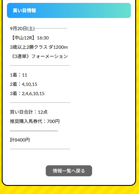 夏競馬でかなり勝たせてもらったのでワンランク上のシークレットサービスに参加したんですけど中9レースの芙蓉ステークスの3万馬券当たりました!