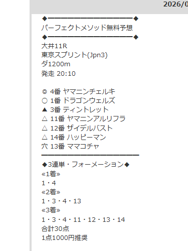 無料予想昨日の東京スプリント3連単100万当たってた!