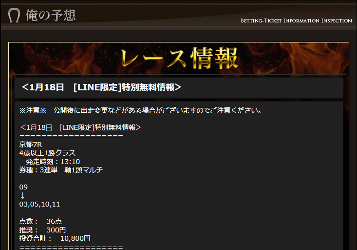 驚いたのは13日の無料予想です。