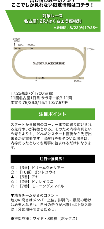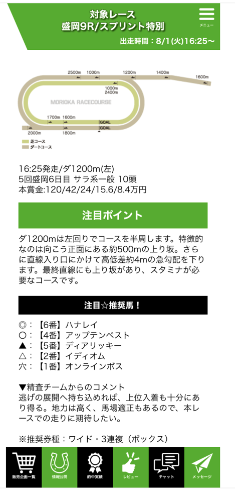 検証中ということで情報提供します 無料予想は平日が地方、土日が中央となっています 的中率は地方、中央共にソコソコです モーカルのコメント欄にはヨイショのクチコミばかり 酷い外れ方をした時に否定的なクチコミを入れてみたのですが 何故か承認される事がありませんでした 判断は運営さんに任せますが 個人的には悪質なサイトだと思っています