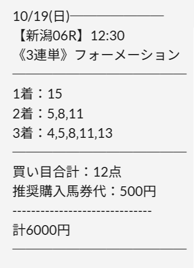 日曜日自分の予想で負けたけど前日に予想使ってたからプラス収支。