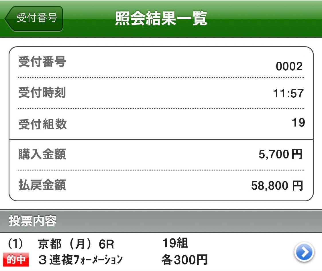 100円で買っていても7万2千円とめっちゃ嬉しい的中!