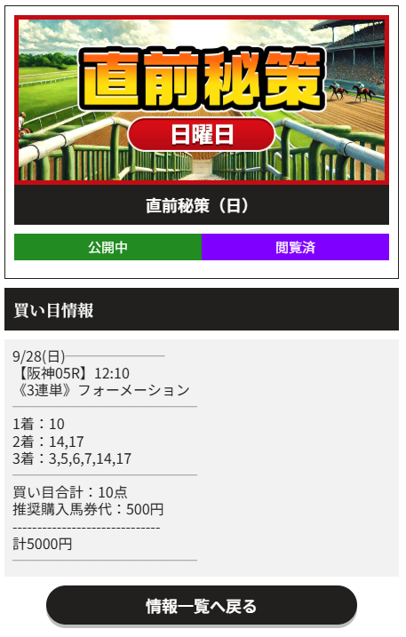 直前秘策情報はマジで当たるな!