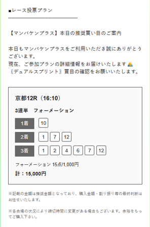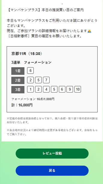 競馬予想サイト使うからにはこれくらいを毎回貰いたいところですね。