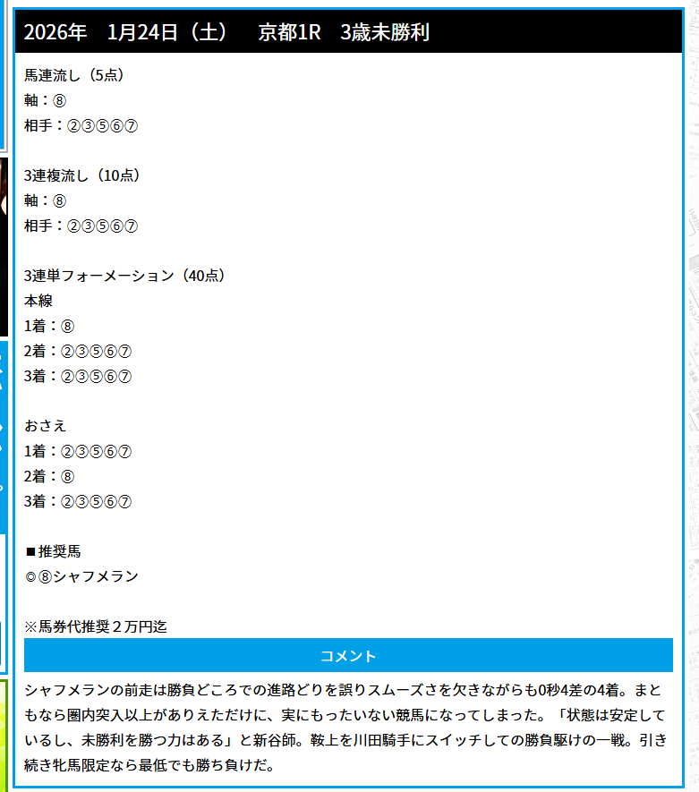 無料予想三連単当たりました!
